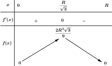 - Lập BBT tìm GTLN của thể tích, từ đó suy ra \(x\) và tìm chiều cao \(h\).