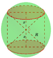- Gọi chiều cao của hình trụ là \(h = 2x\,\,\left( {0 < x < R} \right)\). Tính bán kính đáy khối trụ theo \(R\) và \(x\).