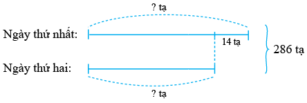 Cả hai ngày cửa hàng bán được 286 tạ bột mì. Hỏi mỗi ngày cửa hàng đó bán bao nhiêu tạ bột mì? Biết ngày thứ nhất bán được nhiều hơn ngày thứ hai 14 tạ bột mì.