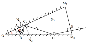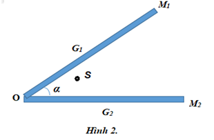 Hai gương phẳng giống nhau được ghép chung theo một cạnh tạo thành góc α như Hình 2 sao cho OM1 =