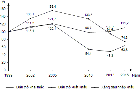 Cho biểu đồ về công nghiệp dầu khí nước ta giai đoạn 1999 - 2015: (Số liệu theo Niên giám
