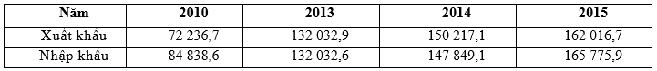 GIÁ TRỊ XUẤT, NHẬP KHẨU CỦA NƯỚC TA, GIAI ĐOẠN 2010 - 2015