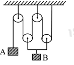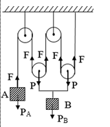 Một hệ ròng rọc được sử dụng để kéo vật B lên cao như trong hình vẽ. Biết vật A có
