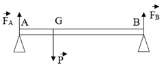 Thanh xà nằm cân bằng khi: \(P = {F_A} + {F_B}\)