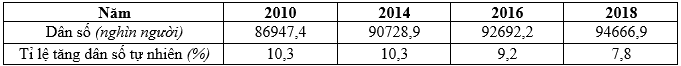 DÂN SỐ VÀ TỈ LỆ GIA TĂNG DÂN SỐ TỰ NHIÊN CỦA NƯỚC TA GIAI ĐOẠN 2010 - 2018