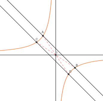 - Chứng minh \(d,\,\,d'\) đối xứng nhau qua \(I\).