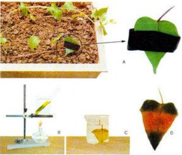 c) Em hãy giải thích vì sao chiếc lá chuyển màu khi gặp iot ? Từ đó kết luận cây chế tạo gì trong khi có ánh sáng ?