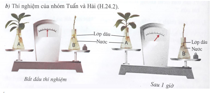Theo em từ thí nghiệm 1 (Dũng - Tú) Sách giáo khoa trang 80 có thể thiết kế thí nghiệm 2 (Tuấn – Hải) thay bằng dụng cụ gì vẫn chứng minh được phần lớn nước vào cây đi đâu?