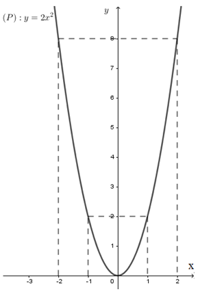Cho hàm số \(y = 2{x^2}\) có đồ thị \(\left( P \right)\)