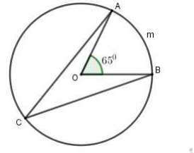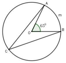 Trên đường tròn (O) lấy hai điểm A, B sao cho \(\angle AOB = {65^0}\) và điểm C như hình vẽ. Tính