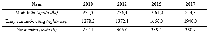 Cho bảng số liệu: MỘT SỐ SẢN PHẨM CÔNG NGHIỆP CỦA NƯỚC TA GIAI ĐOẠN 2010-2017 (Nguồn: Niên