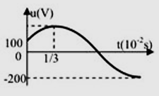 Cho mạch điện gồm điện trở thuần \(100\,\,\Omega \), cuộn cảm thuần có độ tự cảm \(\dfrac{2}{\pi }\,\,H\) và tụ điện có điện dung \(\dfrac{{{{10}^{ - 4}}}}{\pi }\,\,F\) mắc nối tiếp. Đặt vào hai đầu đoạn mạch một điện áp xoay chiều có đồ thị của điện áp theo thời gian có dạng như hình vẽ. Biểu thức điện áp hai đầu tụ điện là: