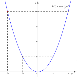 Trong mặt phẳng tọa độ \(Oxy,\) cho hàm số \(y = \dfrac{1}{2}{x^2}\) có đồ thị \(\left( P \right).\) Vẽ đồ thị \(\left( P \right).\)
