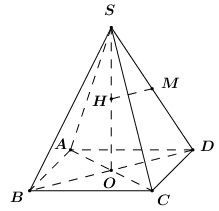 Cho hình chóp tứ giác đều \(S.ABCD\) có đáy là hình vuông cạnh \(a\). Gọi \(M\) là trung điểm