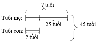 Hiện nay, tổng số tuổi của mẹ và con là 45 tuổi. Mẹ hơn con 25 tuổi. Hỏi hiện nay mẹ bao nhiêu tuổi, con bao nhiêu tuổi?