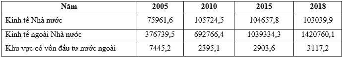 KHỐI LƯỢNG HÀNG HÓA VẬN CHUYỂN PHÂN THEO KHU VỰC KINH TẾ NƯỚC TA GIAI ĐOẠN 2005 – 2018 (Đơn vị: nghìn tấn)