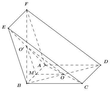 Cho hai hình bình hành \(ABCD\) và \(ABEF\) có tâm lần lượt là \(O\) và \(O'\) và không cùng nằm trong một mặt phẳng. Gọi \(M\) là trung điểm của \(AB\).