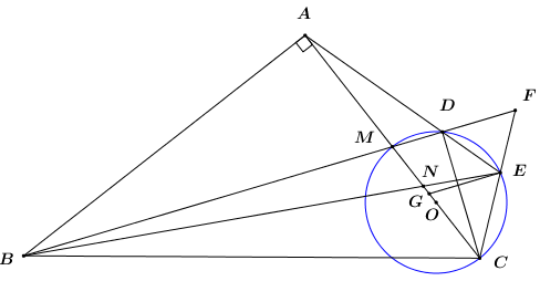 c) Gọi \(F\) là giao điểm của \(CE\) với \(BD\) và \(N\) là giao điểm của \(BE\) với \(AC\).