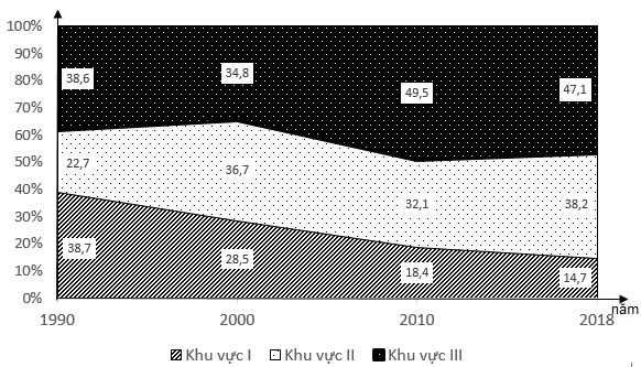 Cho biểu đồ, GDP của nước ta giai đoạn 1990 – 2018
