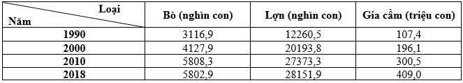 Cho bảng số liệu: SỐ LƯỢNG MỘT SỐ LOẠI GIA SÚC, GIA CẦM CỦA NƯỚC TA Từ bảng số liệu