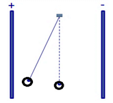 Một quả cầu khối lượng \(4,5.10^{-3}kg\) treo vào một sợi dây dài \(1m.\) Quả cầu nằm giữa hai tấm kim loại song song, thẳng đứng như hình vẽ. Hai tấm cách nhau \(4cm.\) Đặt một hiệu điện thế \(750V\) vào hai tấm đó thì quả cầu lệch ra khỏi vị trí ban đầu \(1cm.\) Tính điện tích của quả cầu. Lấy \(g = 10{\rm{ }}m/{s^2}\)