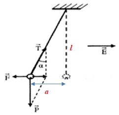 Một quả cầu khối lượng \(4,5.10^{-3}kg\) treo vào một sợi dây dài \(1m.\) Quả cầu nằm giữa