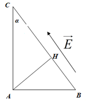 Một điện trường đều cường độ \(5000V/m,\) có phương song song với cạnh huyền \(BC\) của