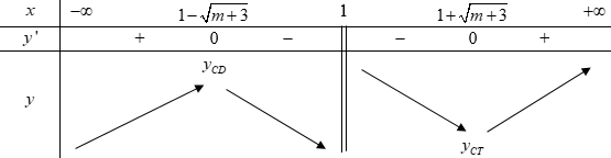 + Tìm điều kiện để phương trình \(y' = 0\) có 2 nghiệm phân biệt thỏa mãn ĐKXĐ.