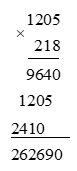 Kết quả của phép tính: \(1205 \times 218\) là: