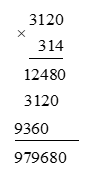 Tìm tích riêng thứ nhất của phép nhân \(3120 \times 314\)