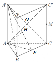 - Gọi \(E\) là trung điểm của \(BC\). Trong \(\left( {A'AE} \right)\) kẻ \(AH \bot A'E\,\left( {H \in A'E} \right)\), chứng minh \(AH \bot \left( {A'BC} \right)\).