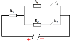 Cho đoạn mạch như hình vẽ. \({R_1} = 3\Omega ;\,\,{R_2} = 6\Omega ;\,\,{R_3} = 4\Omega \). Tính điện trở tương đương của mạch khi: