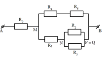 Cho mạch điện như hình vẽ. Biết \({R_0} = 5\,\,\Omega ;\,\,{R_1} = 6\,\,\Omega ;\,\,{R_2} = 18\,\,\Omega