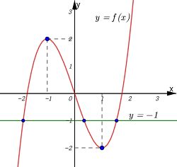 Cho hàm số bậc ba \(y = f\left( x \right)\) có đồ thị là đường cong trong hình bên. Số nghiệm thực của phương trình \(f\left( x \right)=-1\).