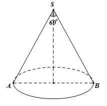 Cho hình nón có bán kính đáy bằng \(2\) và góc ở đỉnh bằng \(60^\circ \). Diện tích xung quanh