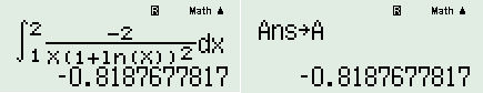 - Sử dụng máy tính cầm tay, tính \(\int\limits_1^2 {\dfrac{{ - 2}}{{x{{\left( {1 + \ln x} \right)}^2}}}dx} \), gán vào phím A.