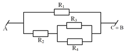 Cho mạch điện như hình vẽ. Biết \({R_1} = {R_2} = {R_3} = {R_4} = R = 10\,\,\Omega \). Điện trở của