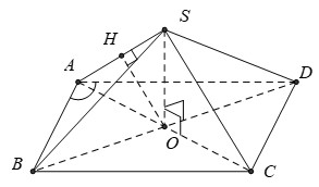 Cho hình chóp \(S.ABCD\) có mặt đáy là hình thoi tâm \(O\), cạnh \(a\) và \(\angle BAD = {60^0}\) và \(SO