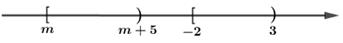 Cho hai tập hợp \(A = \left[ { - 2;\,\,3} \right)\) và \(B = \left[ {m;\,\,m + 5} \right)\). Xác định tất