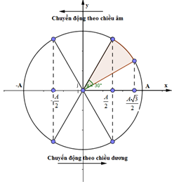 Một vật dao động điều hòa với phương trình \(x = A\cos \left( {\omega t + \dfrac{\pi }{6}} \right),\)
