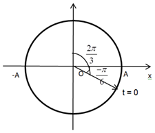 Vật dao động điều hòa theo phương trình \(x = 3\cos \left( {5\pi t - \dfrac{\pi }{6}} \right){\mkern 1mu}