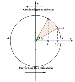 Vật dao động điều hòa trên phương trình \(x = 4\cos \left( {4\pi t + \dfrac{\pi }{6}} \right){\mkern 1mu}