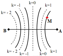 Trong một thí nghiệm về giao thoa sóng nước trên mặt nước, hai nguồn kết hợp ngược pha A, B