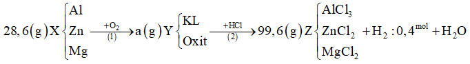Đun nóng 28,6 gam hỗn hợp X gồm Al, Zn, Mg trong không khí thu được a gam hỗn hợp Y gồm các kim