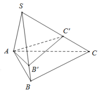 - Chứng minh \(S.AB'C'\) là tứ diện đều cạnh \(3\).