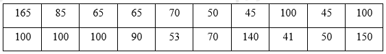 Quan sát và đếm số giá trị nhỏ hơn \(100\) trong bảng số liệu.