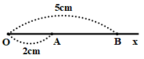 Trên tia \(Ox\), hãy vẽ hai đoạn thẳng \(OA\) và \(OB\) biết \(OA = 2cm\), \(OB = 5cm\). Trong ba điểm