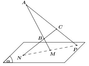 Cho \(A,\,\,B,\,\,C\) không thẳng hàng ở ngoài mặt phẳng \(\left( \alpha \right)\). Gọi \(M,\,\,N,\,\,P\) lần lượt là giao điểm \(AB,\,\,BC,\,\,AC\) với mặt phẳng \(\left( \alpha \right)\). Chứng minh \(M,\,\,N,\,\,P\) thẳng hàng.