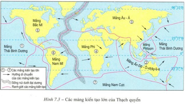Hình 1: Các mảng kiến tạo lớn của Thạch quyển