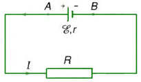 Điện áp giữa hai cực của nguồn: \(U = \xi - I.r\)